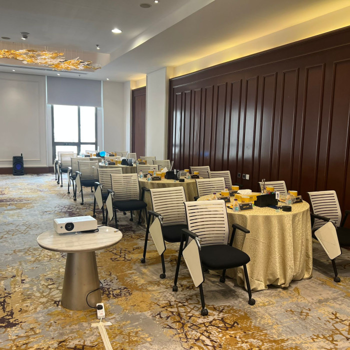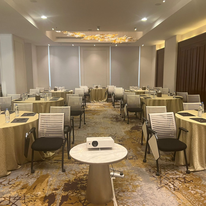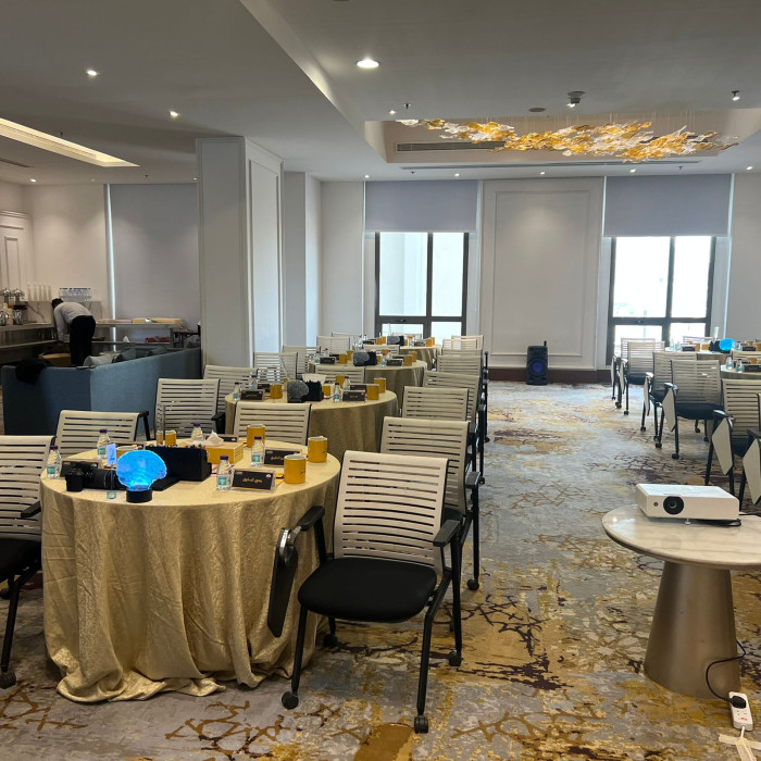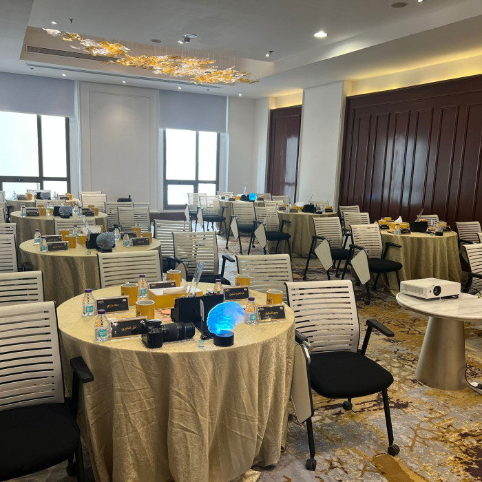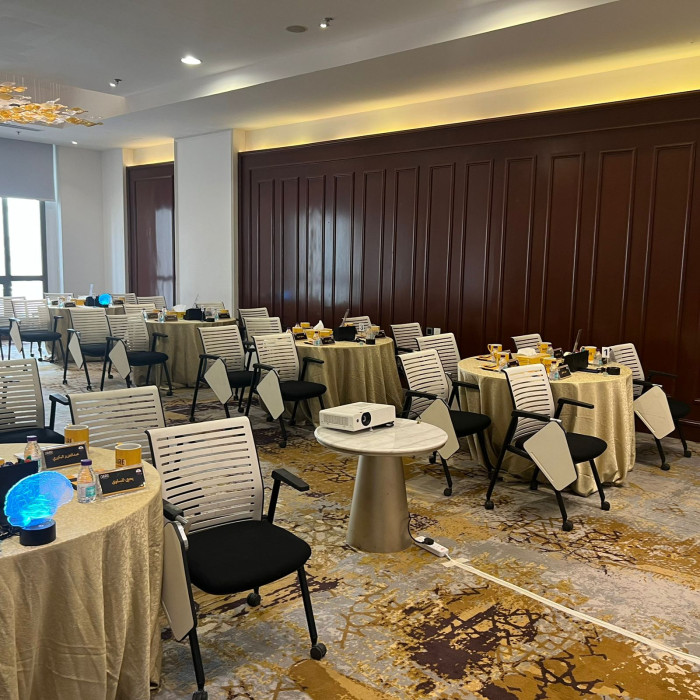 انطلق بأعمالك من داخل قاعة مجهزة بأعلى المعايير، تقدم بيئة عمل مرنة وراقية في الوقت ذاته. تتيح لك إمكانية تخصيص ترتيب الجلسات بما يتناسب مع طبيعة الحدث، بينما يضفي التصميم الجمالي لمسة من الأناقة والهدوء تعزز من تركيز الحضور وتفاعلهم.